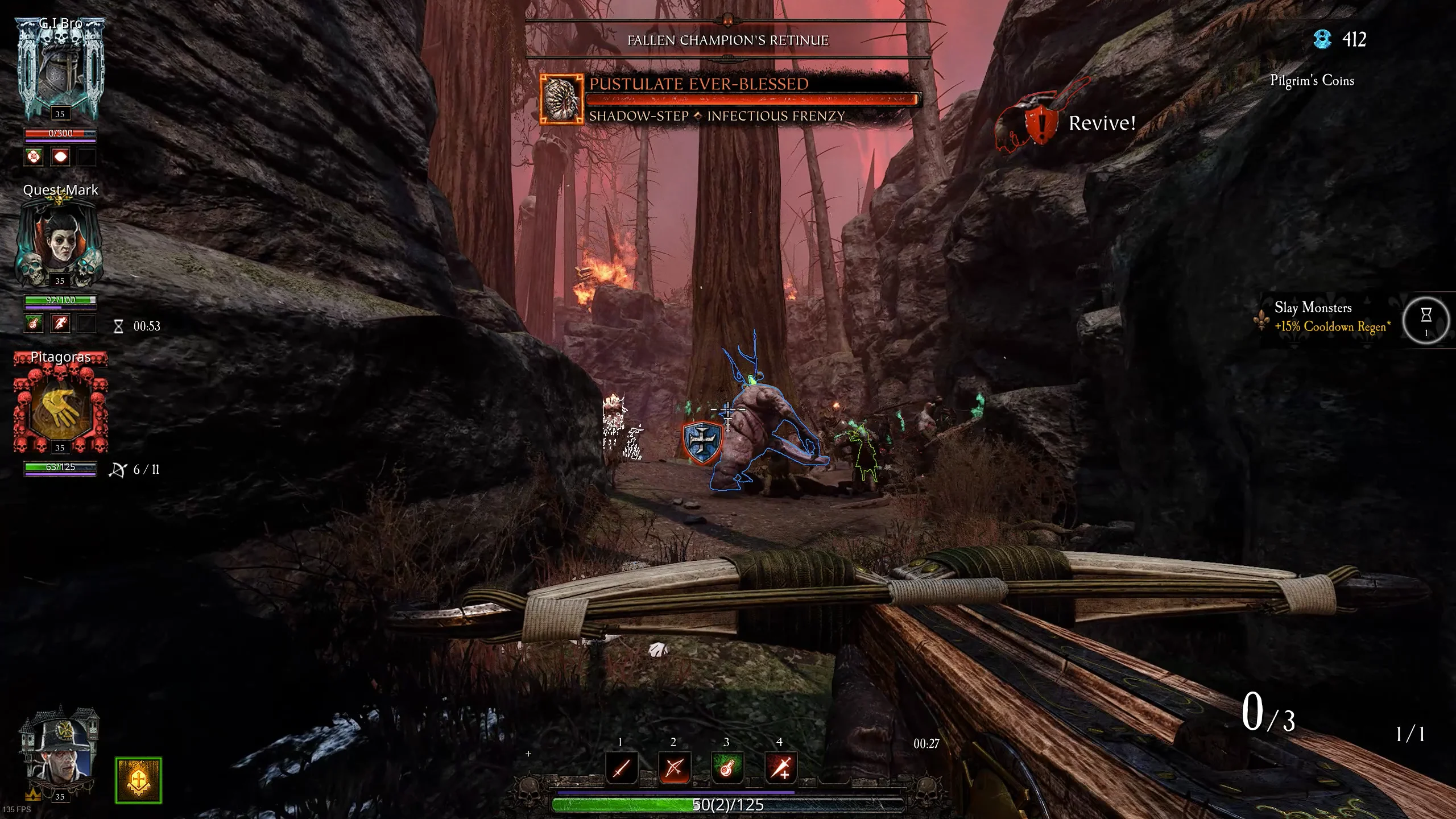 This is the first time I’ve seen either bug in CW occur. I didn’t think about taking screenshots or something as I was both desperately trying to buy boons on the shrine and during the arena fight all of us were baffled at how it died so quickly out of nowhere, but we still had to deal with all the other enemies.