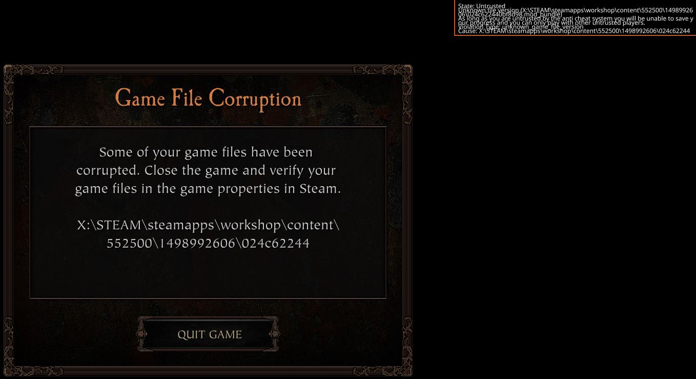 For anyone wondering, that mod is the “Countries in Lobby” Mod. It lets you see which country a lobby is hosted from. I’ll explain more in a bit on why it’s apparently the problem mod.