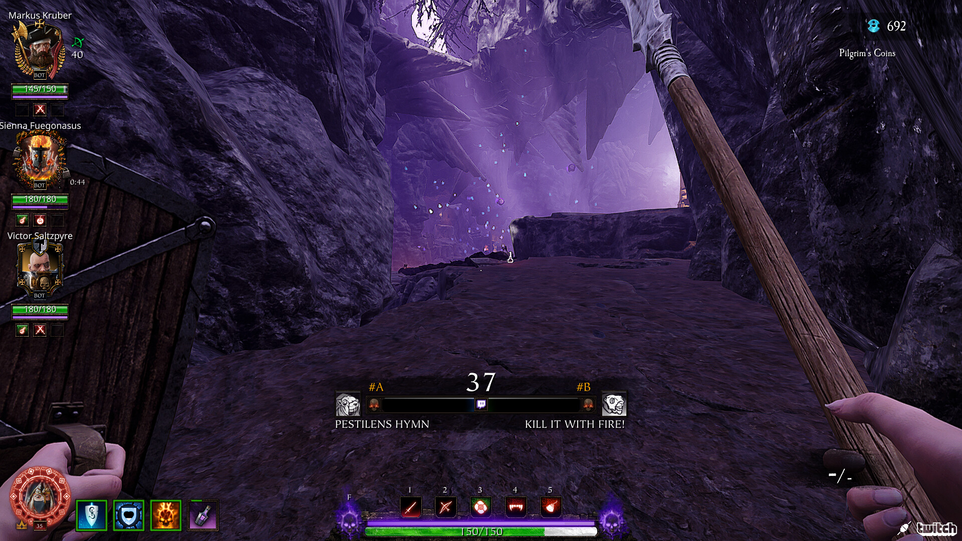 When playing handmaiden, zealot or footknight when you ult in this specific area it will always force you into a hanging on a ledge animation in the middle of the cliff.