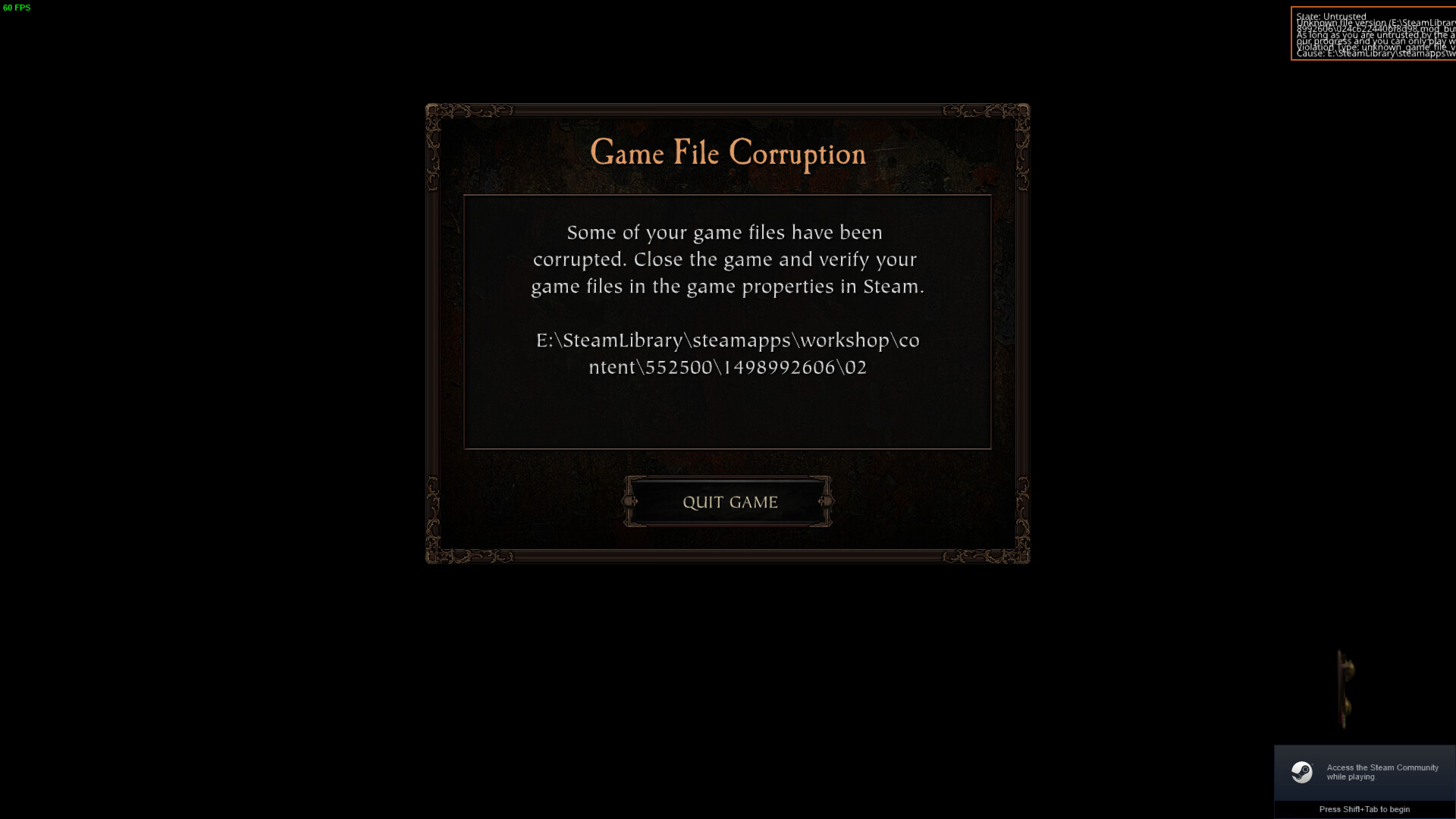 everytime i try to play the game is does this after the intro cutscene and then just force quits the game. I have deleted and re-installed the game and i have verified the game files through steam. Everything ran just fine yesterday and i played most of the day. Nothing was changed today on my pc cause the first thing i tried to do was play vermintide for it to immediately start doing this