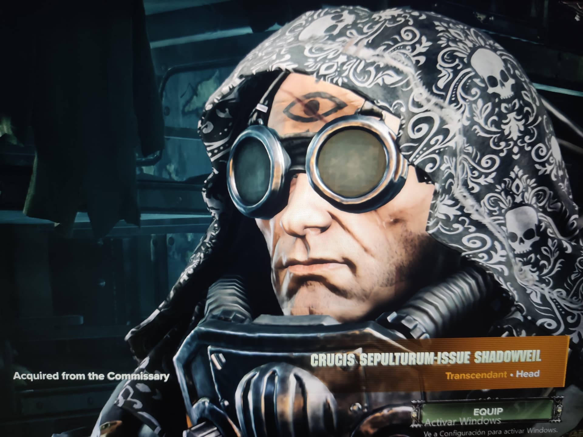 The cosmetic hood for psykers called “Crucius sepulturum-issue shadowveil” displays my character without beard, even if shows other physical aspects like tatoos.
