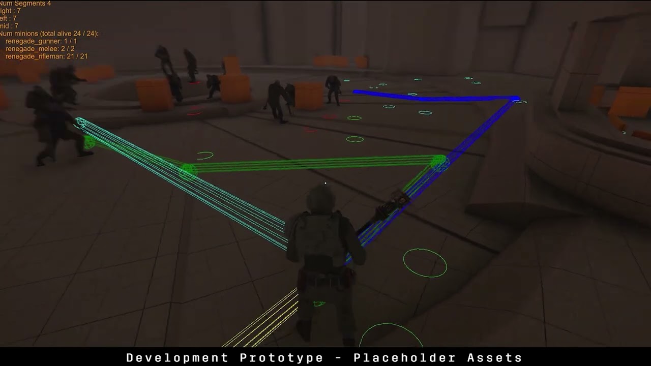 - Combat Vector System: This system calculates positions between players and groups of enemies to simulate a "direction of combat”. It prevents enemies from firing at players from all angles. This is the fallback system when no cover is available.