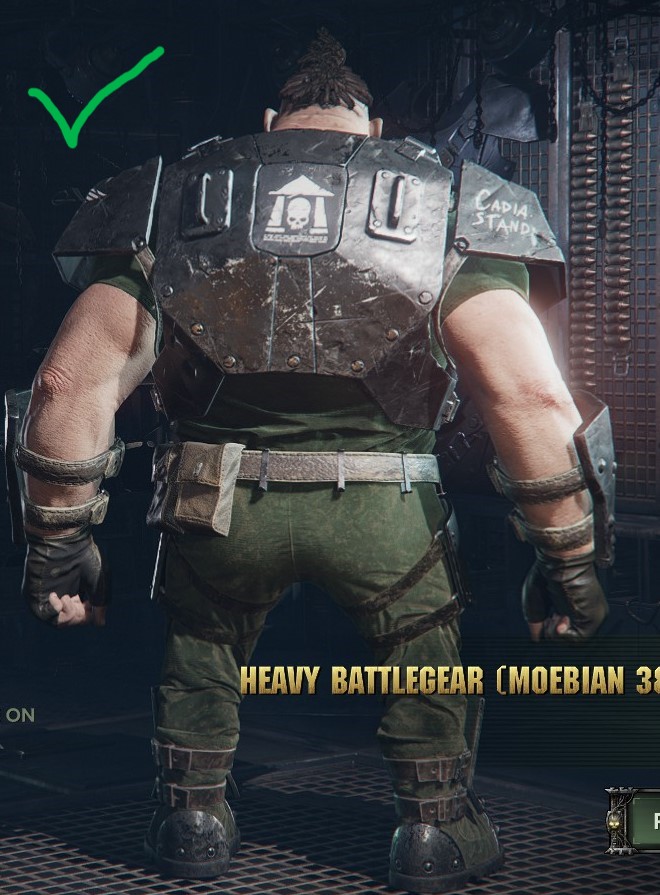 Look how Militarum Heavy Armor (upper body) matches perfectly with the Heavy Battlegear (lower body) from Blug the Smasher bundle… I mean, same symbols, same color, same armor plates