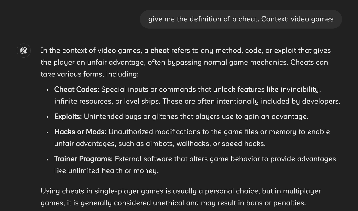 I asked chatgpt to answer the question, is a mod authorized a cheat?