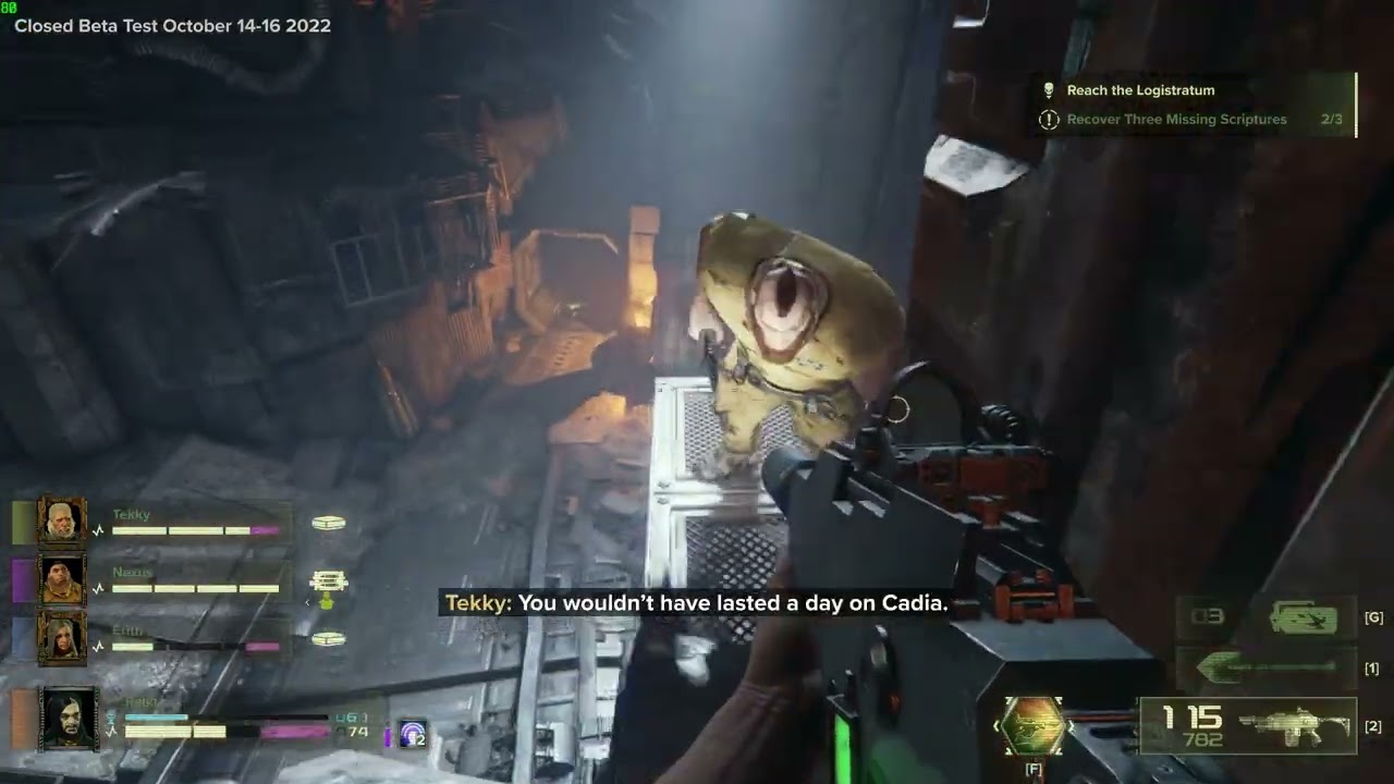 Man, I love Cadia-- Anyway, yeah, one more point I wanted to make about Masozi-- She’s way too upbeat. This is, again, Warhammer 40k. She talks and acts like a Marvel protagonist, like the quirky dialogue and constant making fun of everything seems out of place with the grinding, awful nature of the world we’re playing in. A little levity is fine, welcome, even, but she comes across as outright irreverent of everything that’s happening.