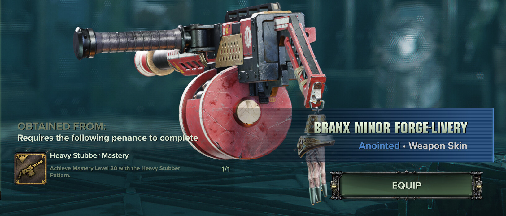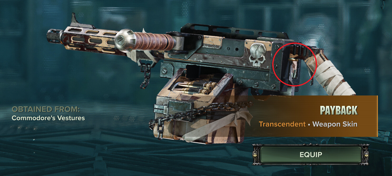 The trinket placement on 2 heavy stubber skins is incorrect. The mastery skin has the correct placement and size.