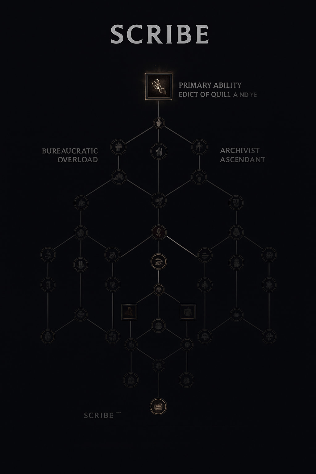 The Scribe slams a rune-stamped edict into the air, releasing a wave of administrative authority.