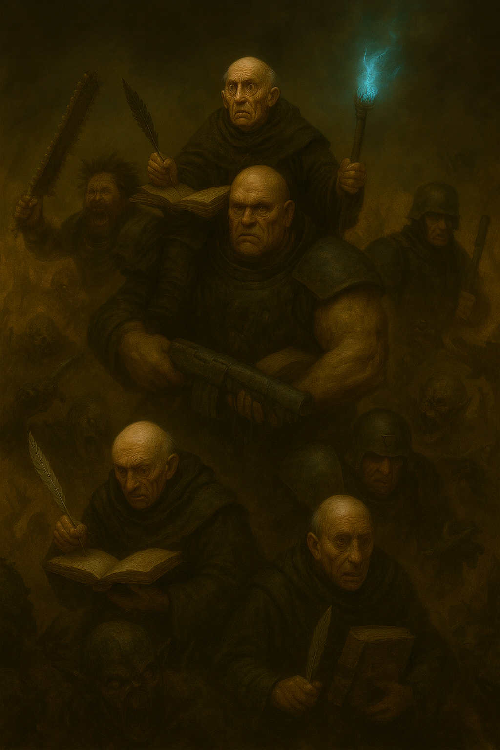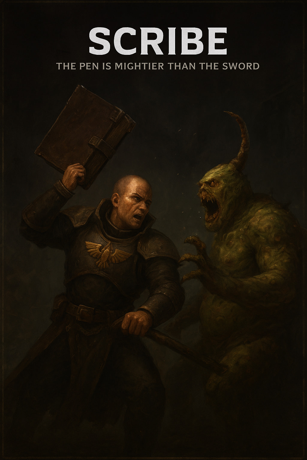 Scribes are walking data vaults, carrying knowledge of logistics routes, cult infiltration patterns, supply catalogues, and Adeptus Terra codes—making them valuable (and exploitable).