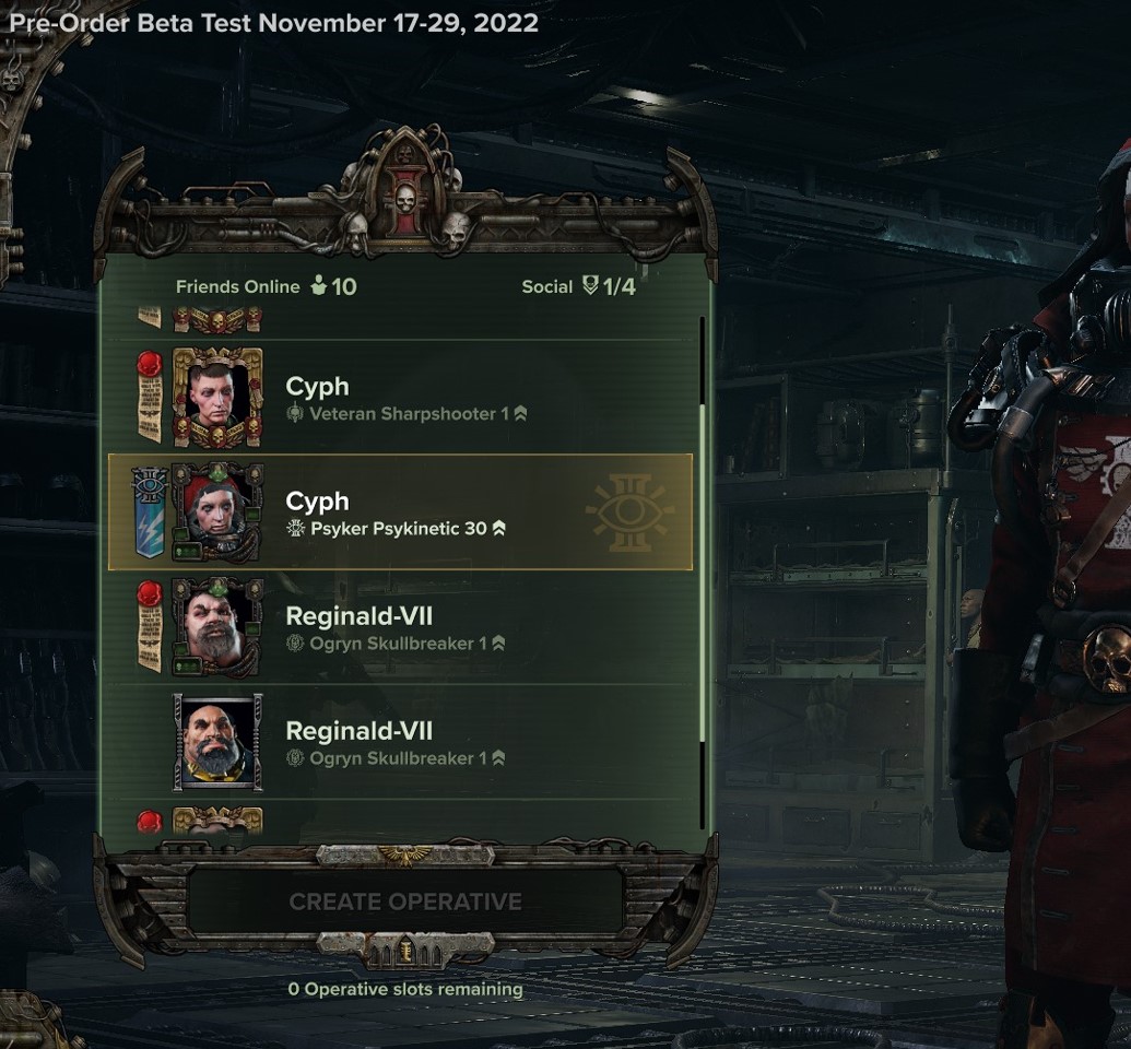 I’m able to fully scroll up and down the operative list, everything “functions as expected”, but chose to take the screenshot half way down, just to display the 6 portraits. I intend to delete both “Reginald” characters, as these were just to test something