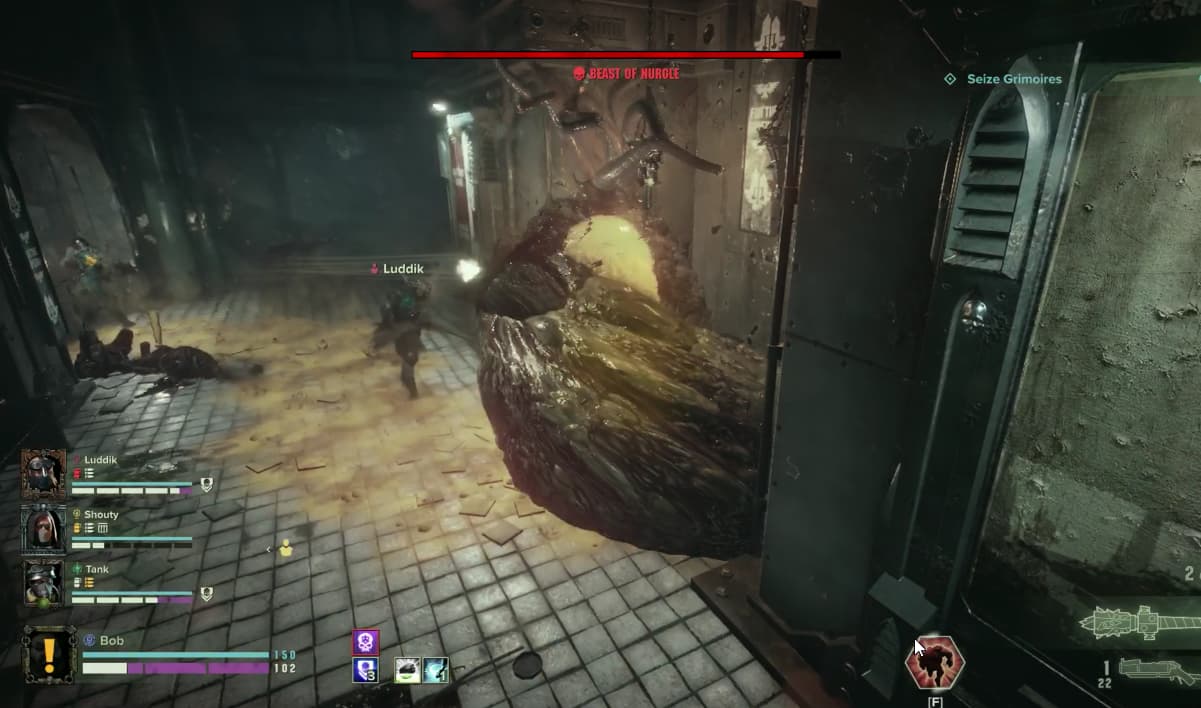Beast of nurgle threw me to previous part of the map after door closed on RELAY STATION TRS-150. It was right at the entrance of the open market-like part. Just joined the mission in progress and the team was a bit further ahead, beast spawned at the back and ate me, then ran back to the door that was blocking the previous area and vomited me through it. I couldnât get back and had to quit.