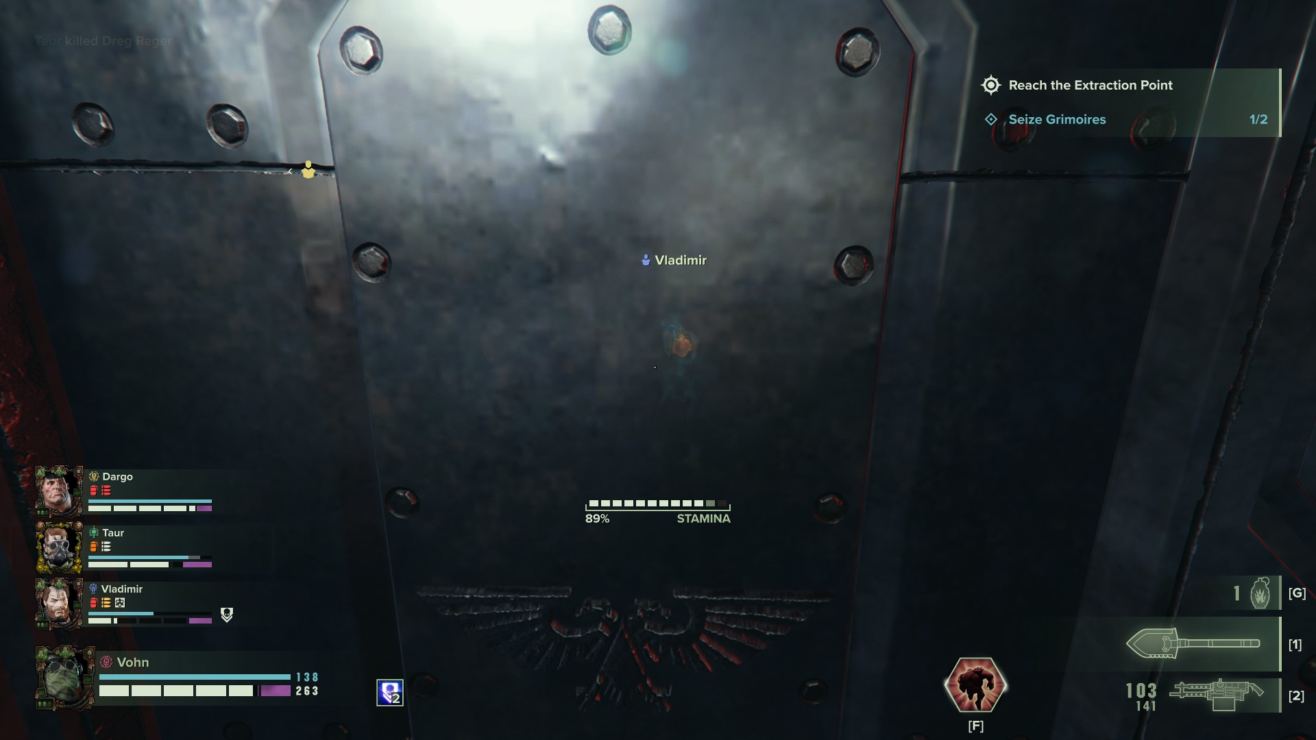 I got grabbed by a Chaos spawn during the mission aside to the link fence on the Ascend the Riser objective checkpoint and was thrown through the chain fence by the Chaos Spawn