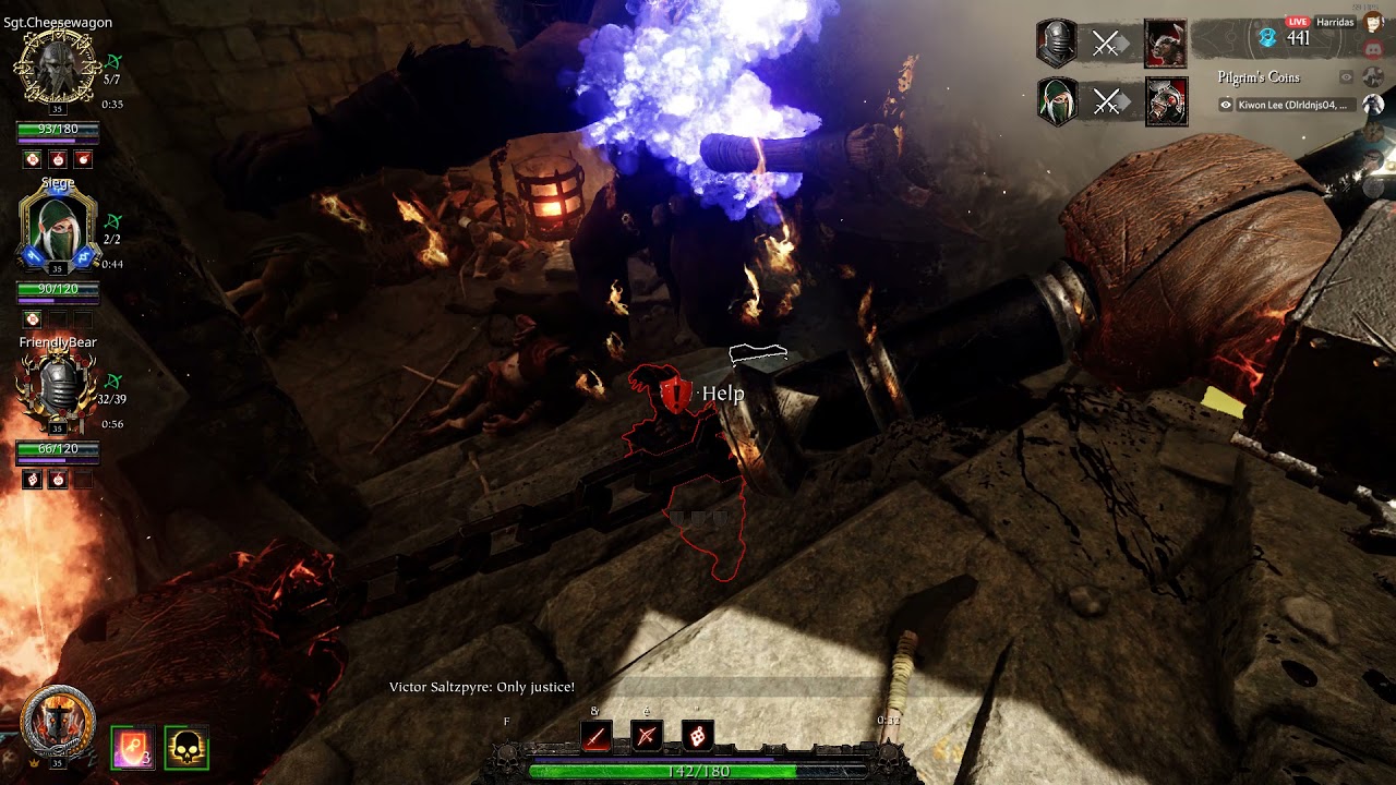 A player already ledged getting pushed into the floor by the monster standing on top.