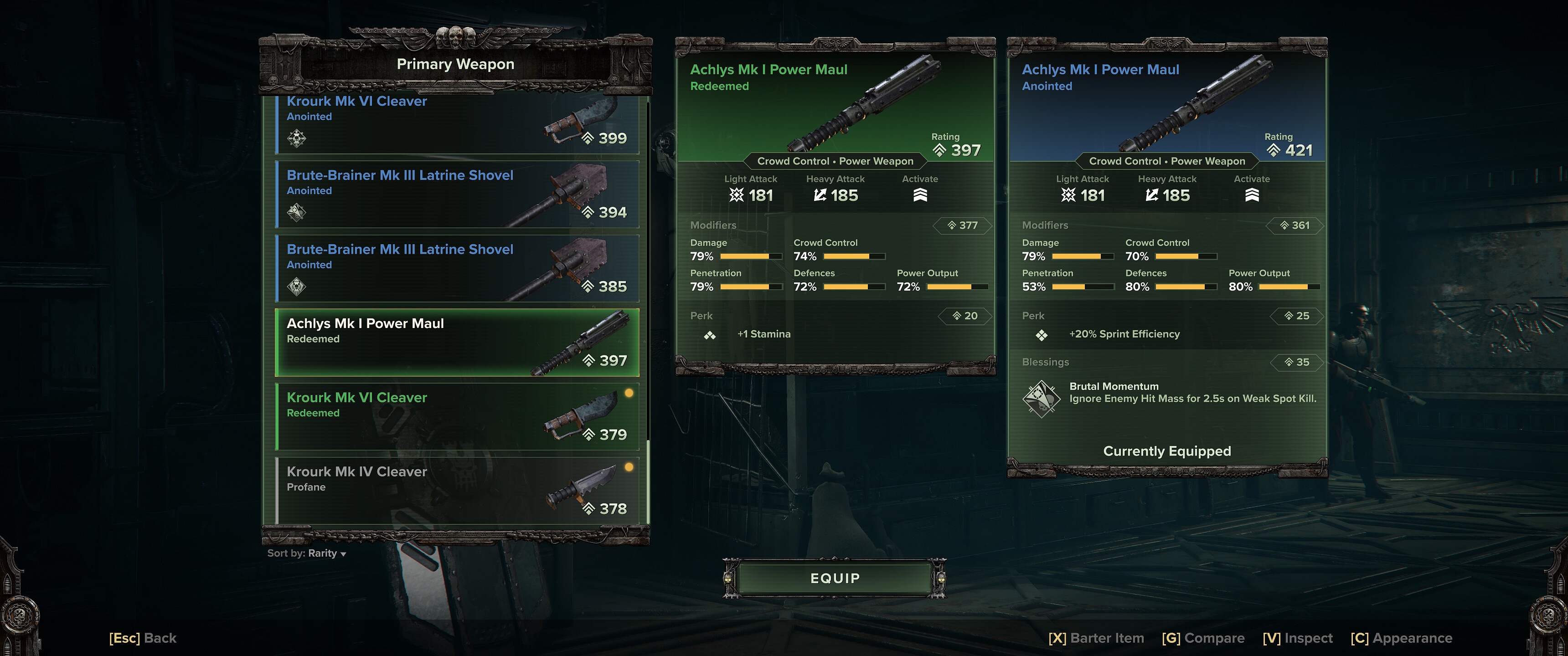 I’m in agreement, aside from the power maul and shovel it feels like some weapons are just trash like the mk1 club which is literally just a pipe. I wish one of the knives could actually do great armor pen and single target damage so we could simulate the “huge knife” profile from the 9th edition guard codex since that’s -2AP and 2 damage on tabletop. The knives in this game are either sir shank a lot but no ap, or sir horde clear and also no AP. The club and shield I feel is only for stagger and while it can be ok, I think fatshark was afraid to make ogryn melee too good because then the character would actually be fun to play. I’d rather slap things around in melee as zealot right now.