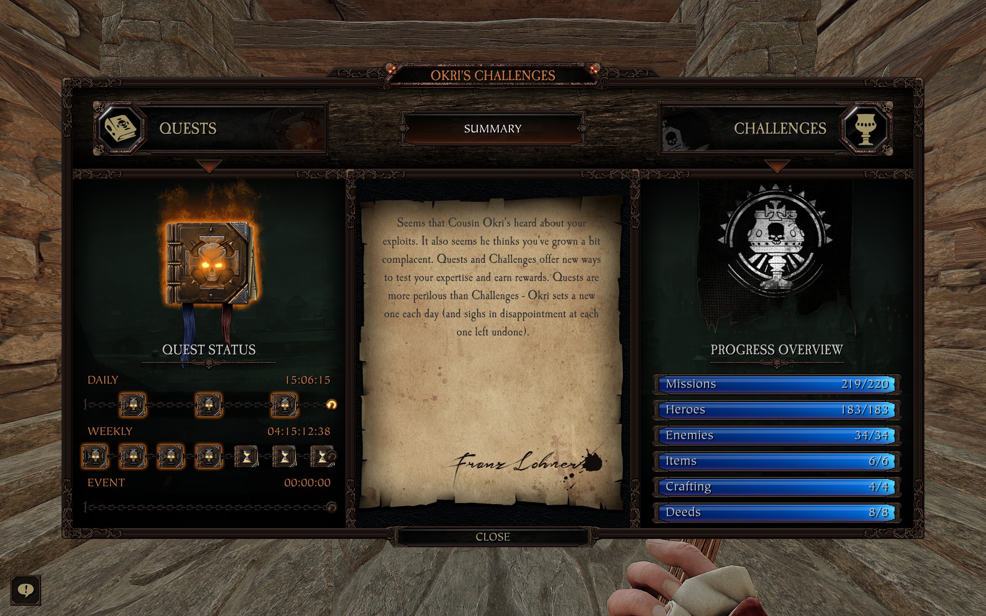 I have an issue with Okri’s book. One of the new CW achievements in missions is bugged. I guess, it is related to Nurgle’s challenge reward, that was broken at the start of CW. And since then - I have this missing achievement in the book. It says, that i have something incomplete, but everything is done.