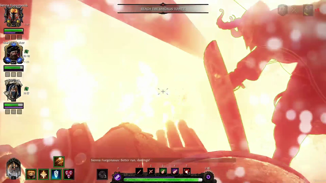 Gromril-Plated Shot/Innovative Ammo Hoppers and concentration potion might be useful here but arenât necessary. Make sure you have an Elite around along with a Monster. When the Monster has low hp, wait for a special and then use the Crank Gun to kill all three enemies in whichever order you see fit.