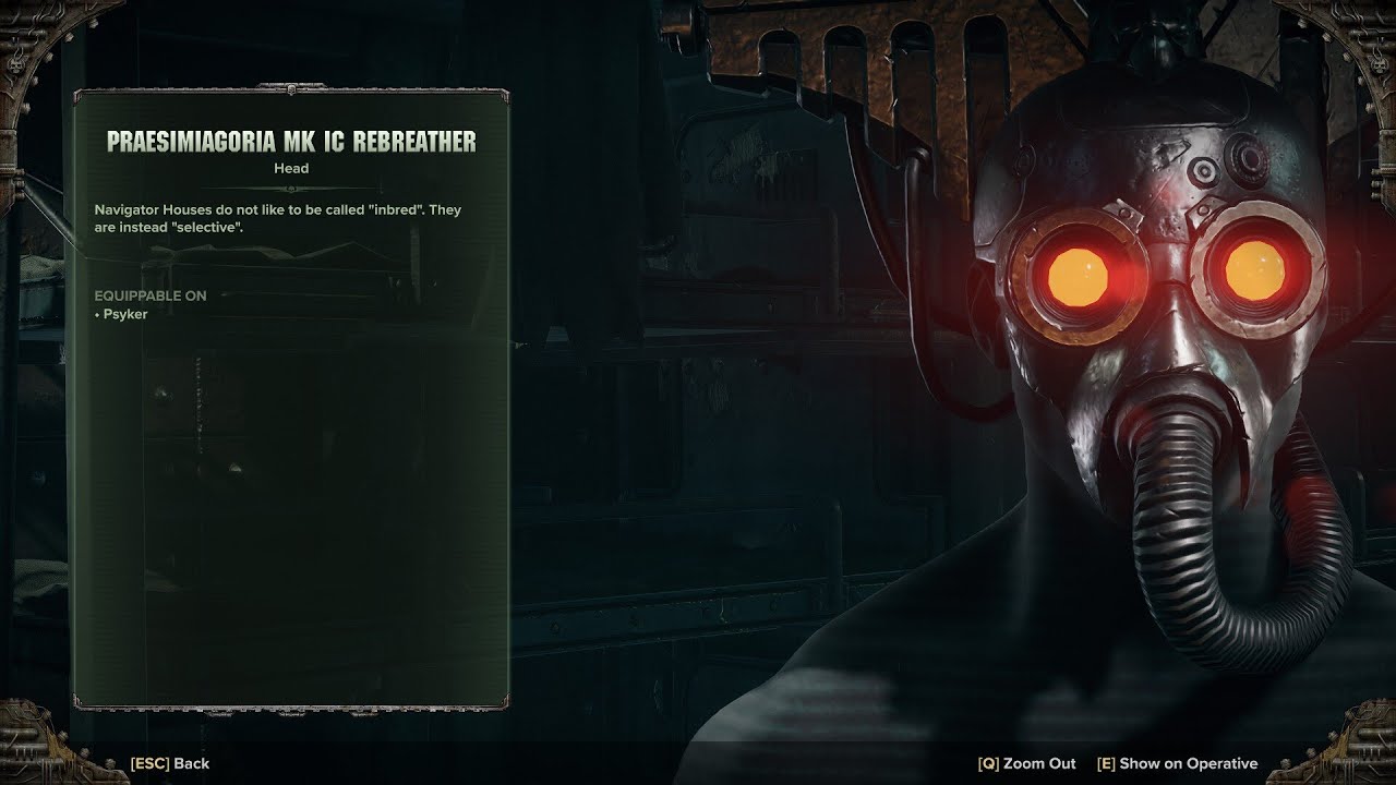 Equip helmet that covers mouth as Veteran, Ogryn, or Zealot